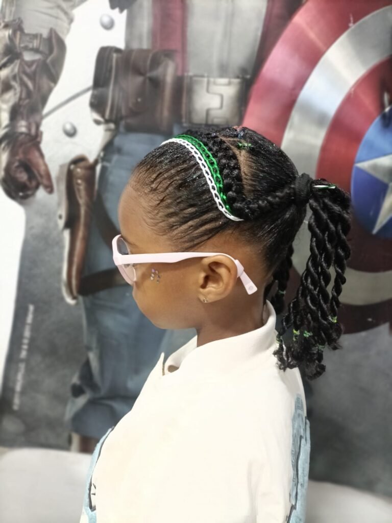 - Trenzas de crochet en cornrows: Las trenzas de crochet también se pueden hacer en estilo cornrows (trenzas pegadas al cuero cabelludo). Puedes crear diferentes patrones y diseños con las trenzas de crochet en el cuero cabelludo.